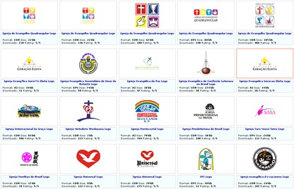 E olha só que bom! Você encontrará no Seeklogo logotipos de igrejas de várias denominações evangélicas!! Experimente buscar pelo termo “igreja”! Você vai ver logotipos de denominações bem conhecidas, como, por exemplo, a Igreja do Evangelho Quadrangular, Sara Nossa Terra, Universal e Igreja Internacional da Graça de Deus (veja imagem abaixo).